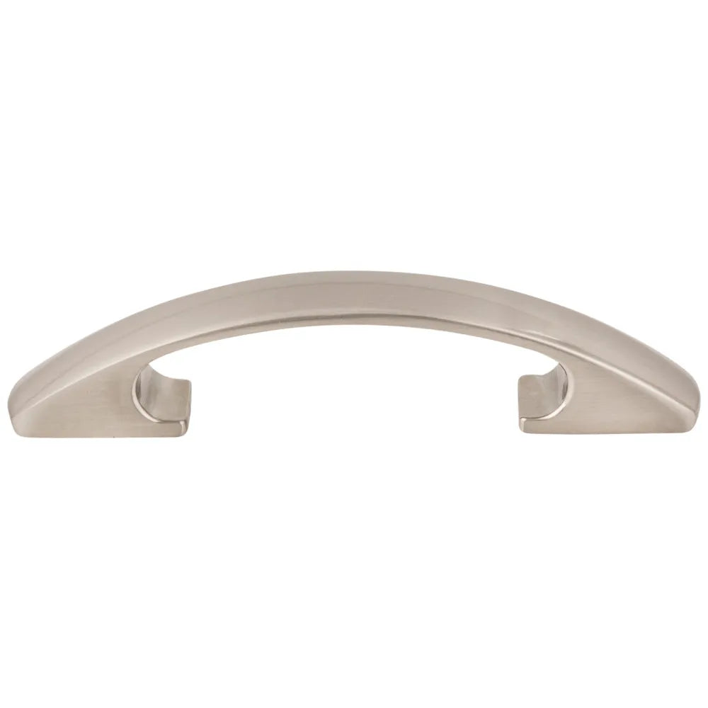 Cascading curves that create a clean aesthetic define this Satin Nickel 4-1/2" overall length Strickland pull by Elements. The feet of this pull gently tuck beneath its arched handle, adding fascinating design detail that can also serve as a covering for holes left by previous pulls. With six finishes and three additional length options, these pulls can suit any type of cabinetry. Each item is individually wrapped to protect the item from damage. Attachment hardware is included.